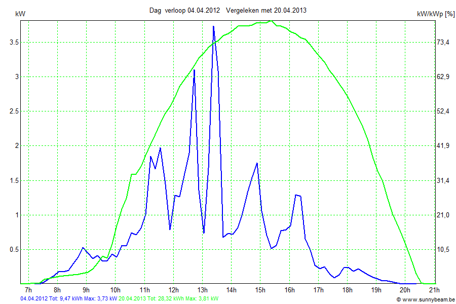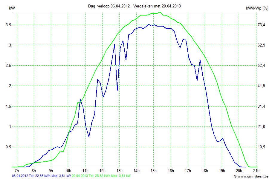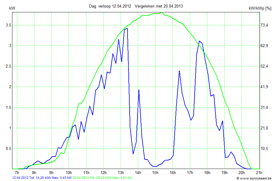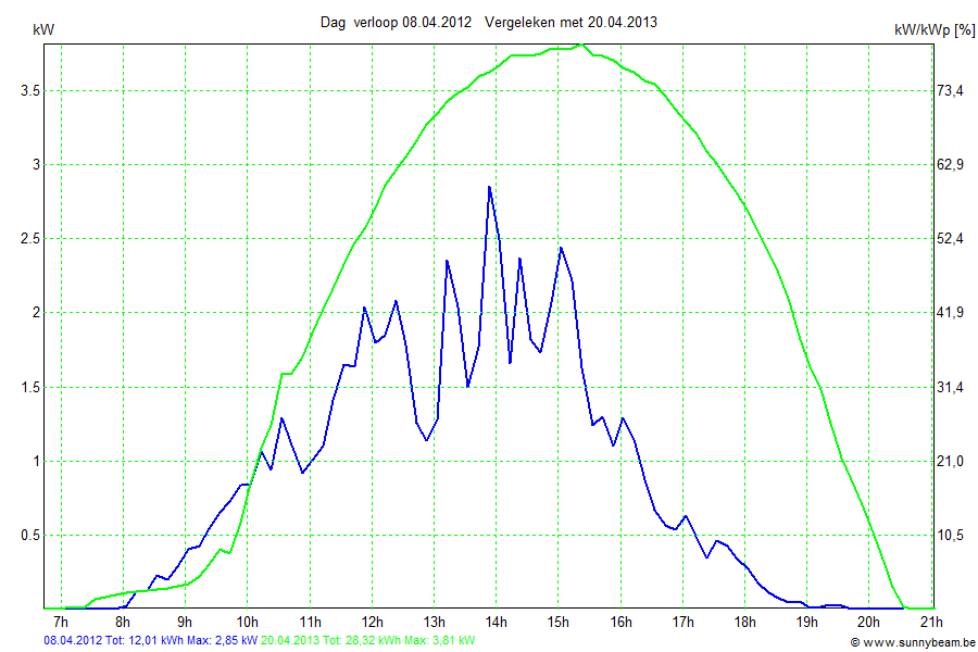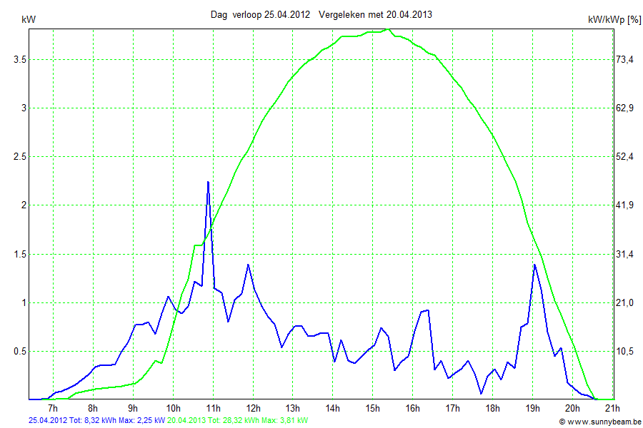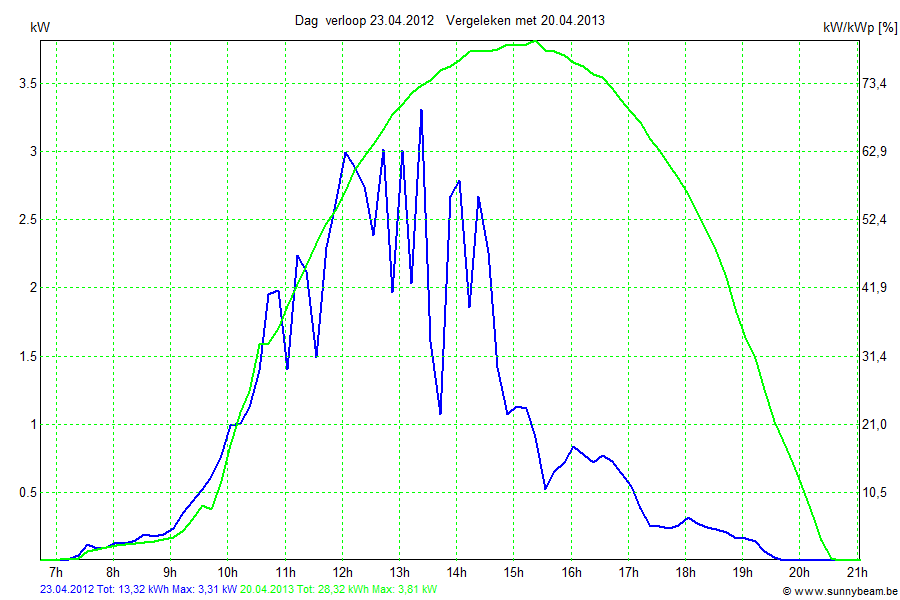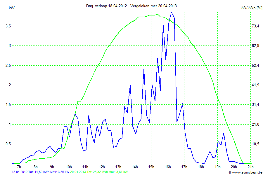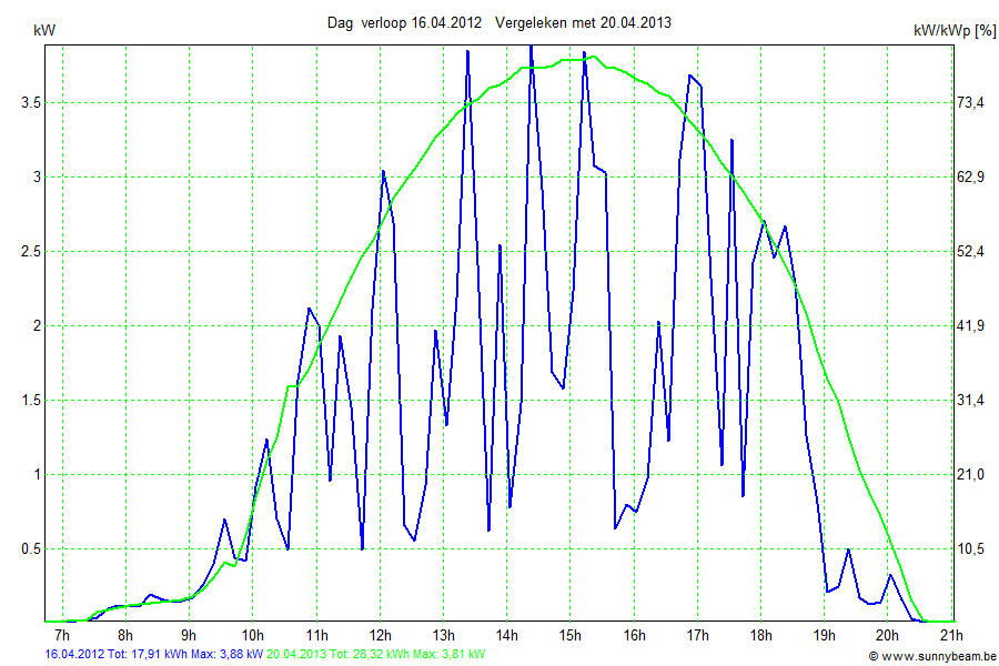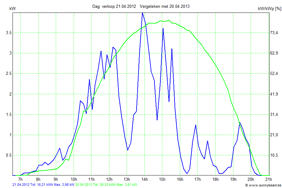 | Datum | Opbrengst [kWh] | Opbrengst [kWh/kWp] | Verwacht [%] |