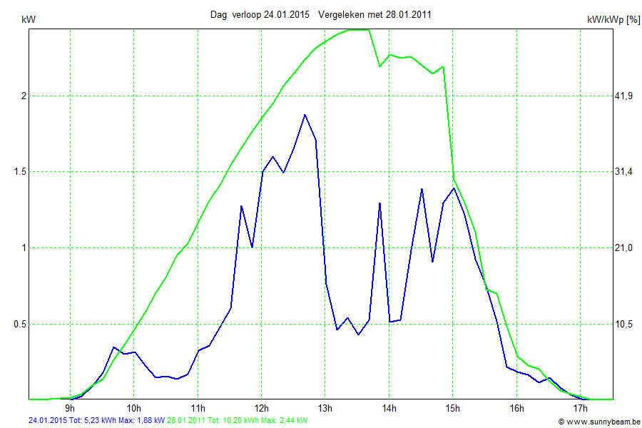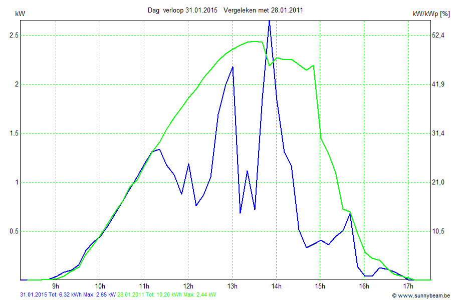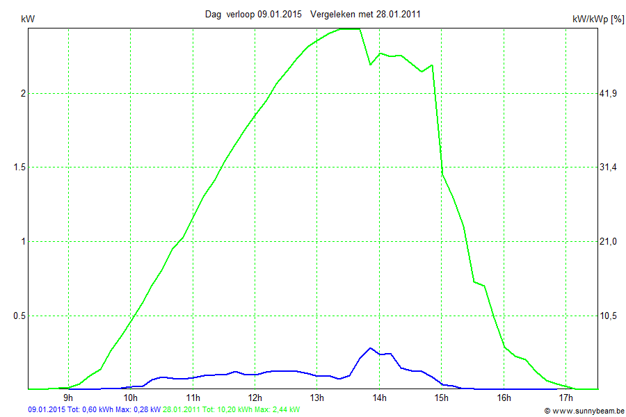 | Datum | Opbrengst [kWh] | Opbrengst [kWh/kWp] | Verwacht [%] |