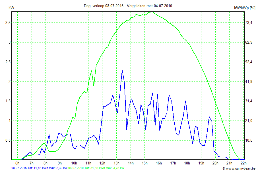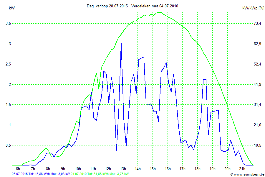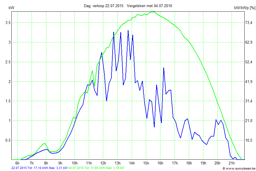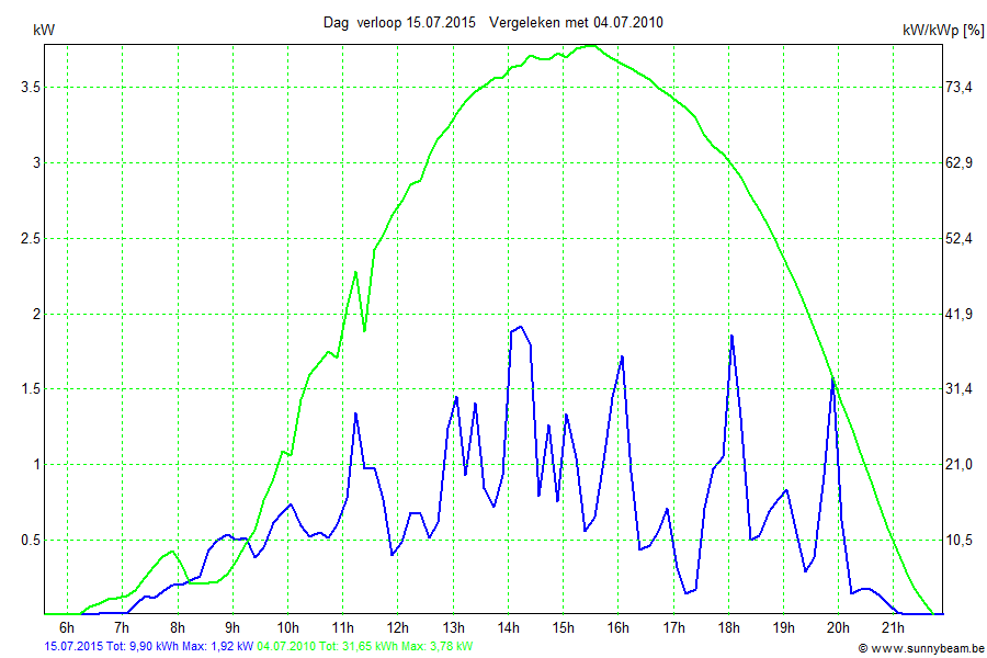 | Datum | Opbrengst [kWh] | Opbrengst [kWh/kWp] | Verwacht [%] |