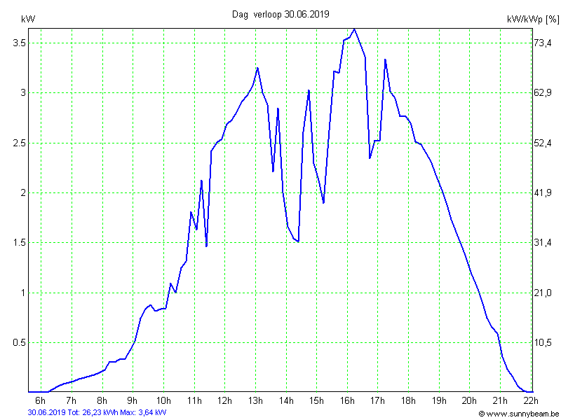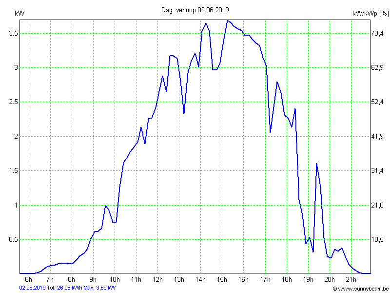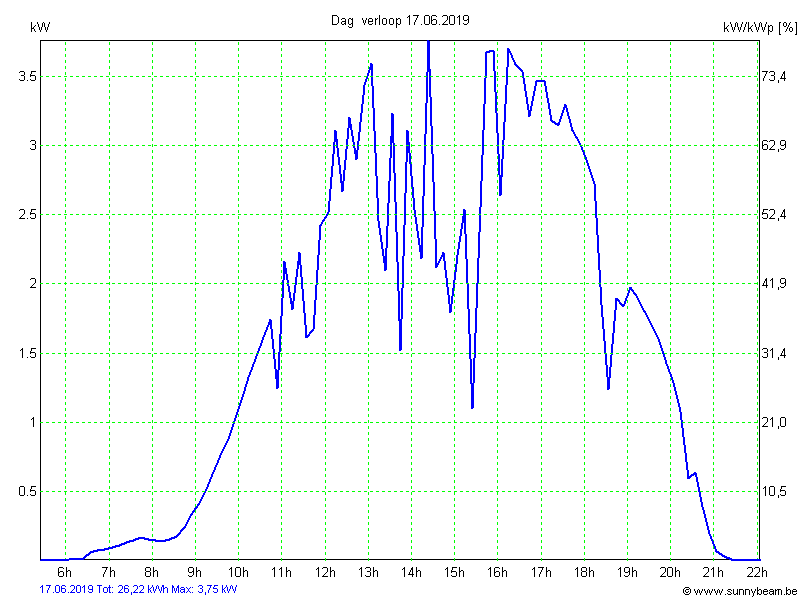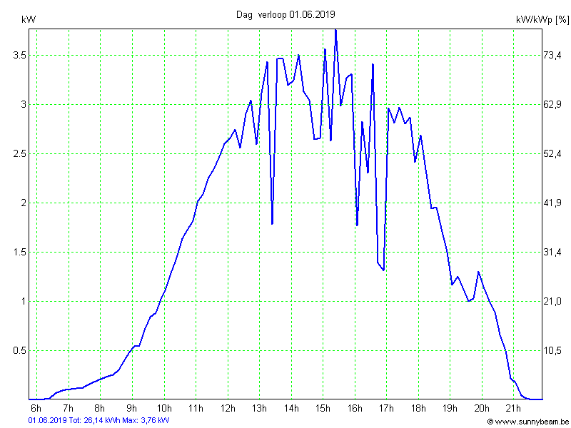 Hier kan je de opbrengst van onze zonnepanelen volgen.