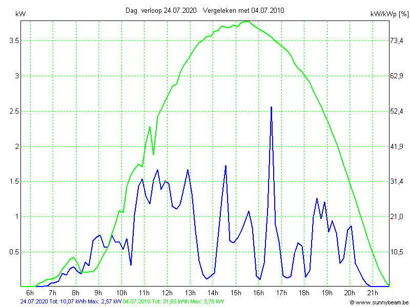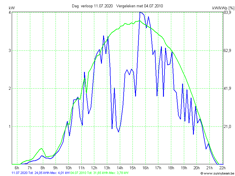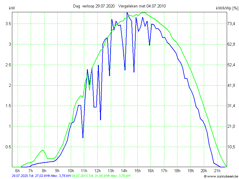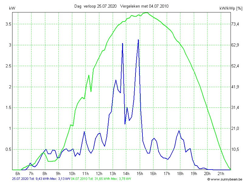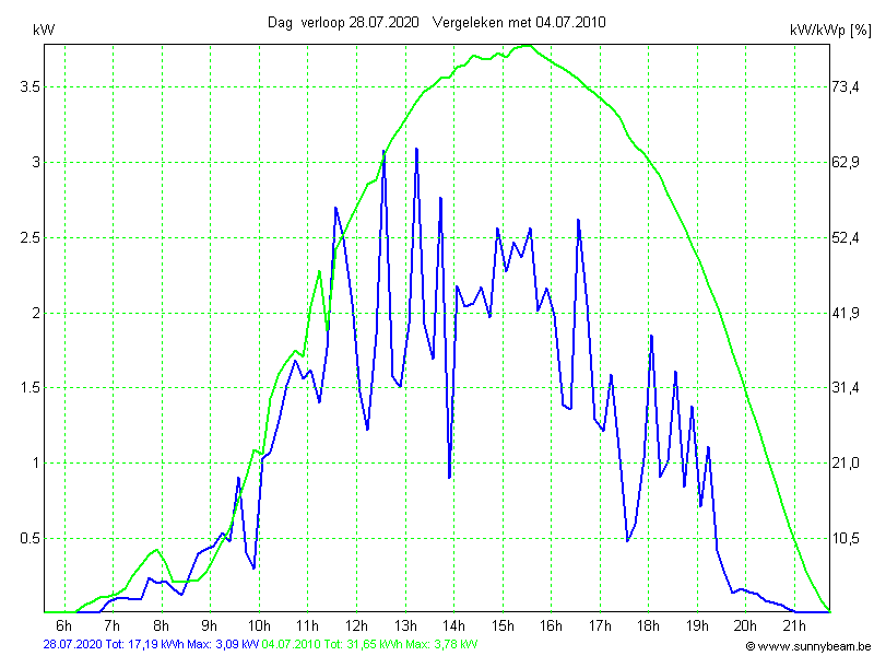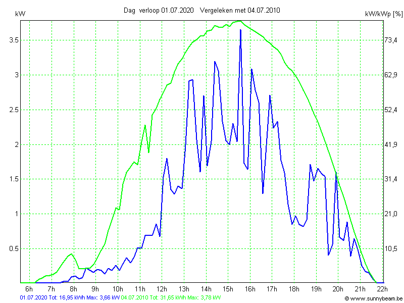 | Datum | Opbrengst [kWh] | Opbrengst [kWh/kWp] | Verwacht [%] |