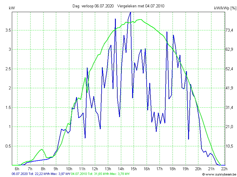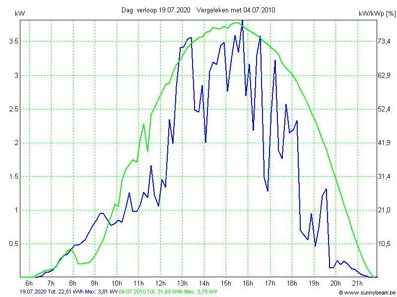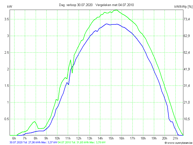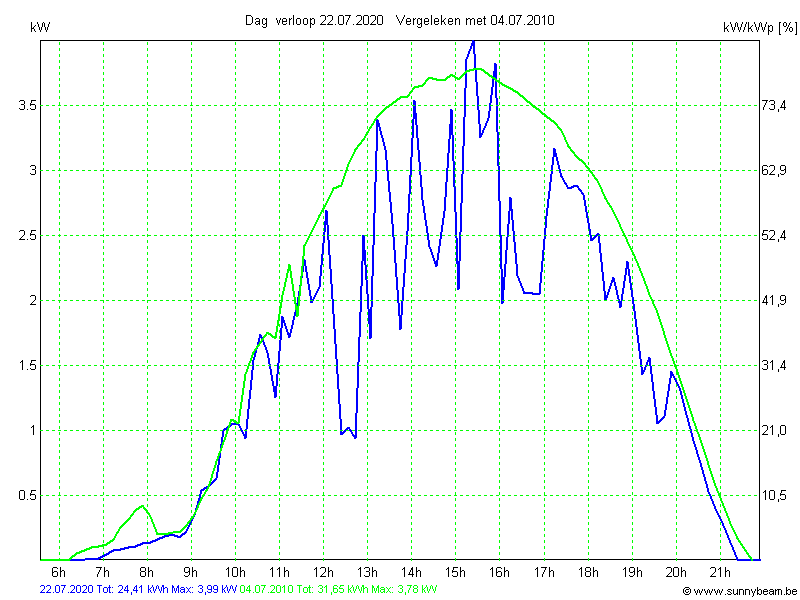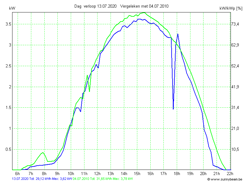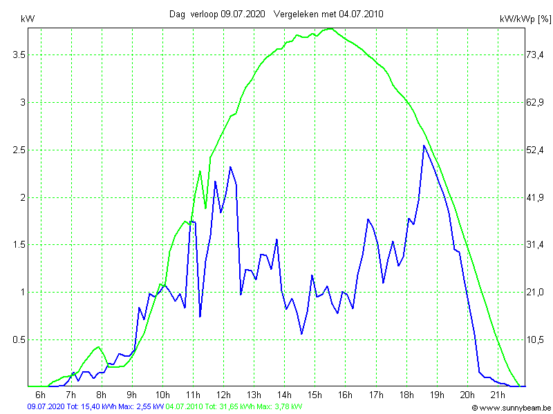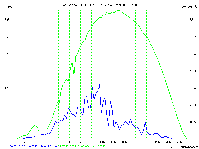 Hier kan je de opbrengst van onze zonnepanelen volgen.