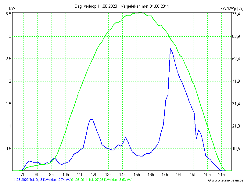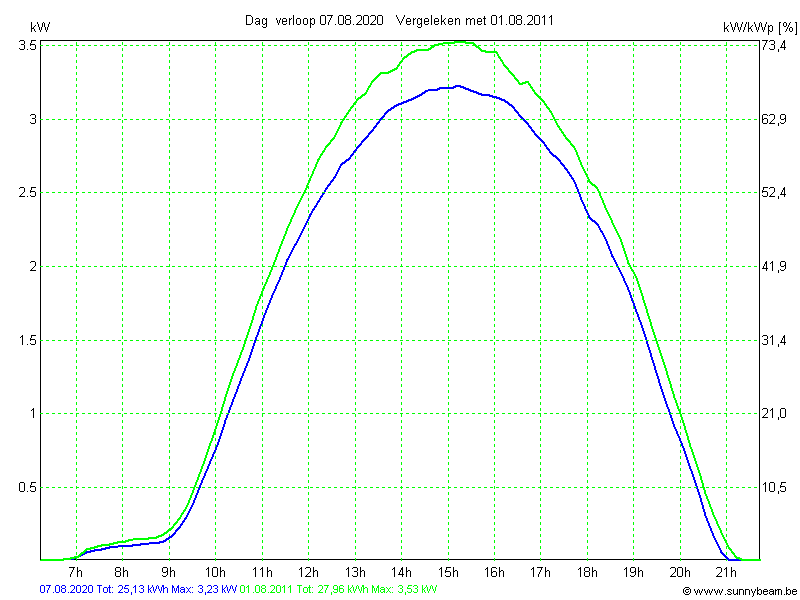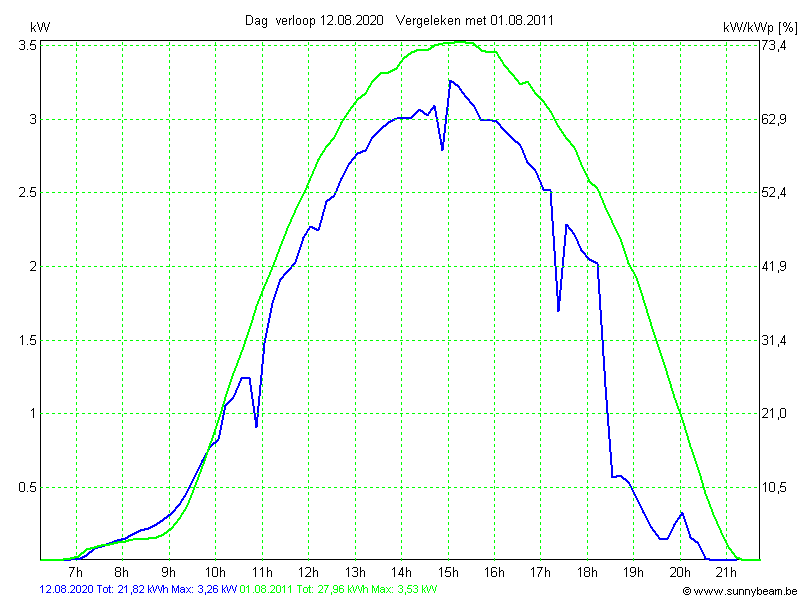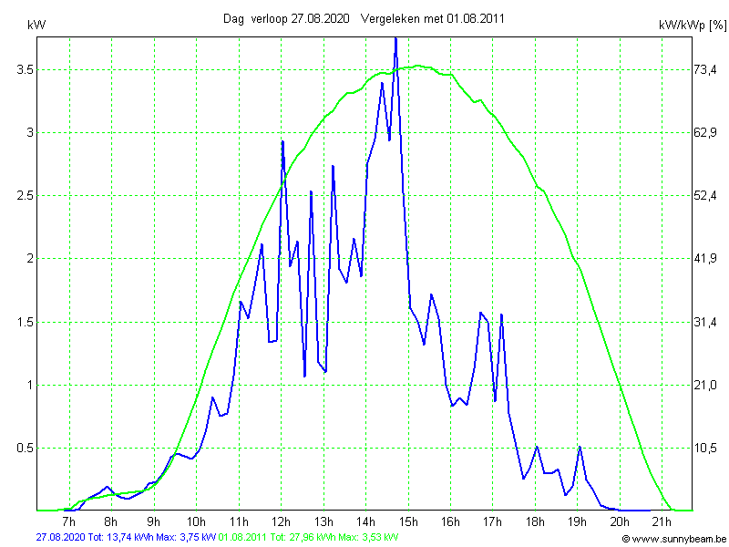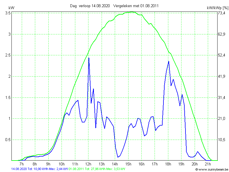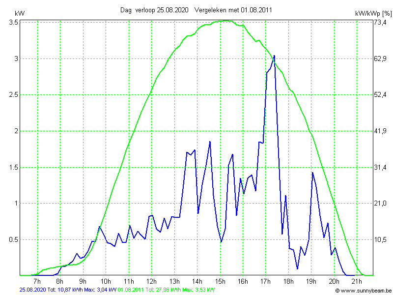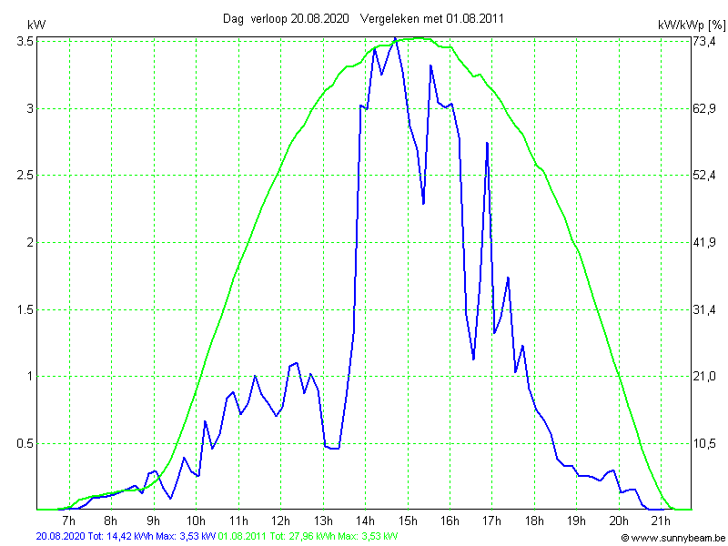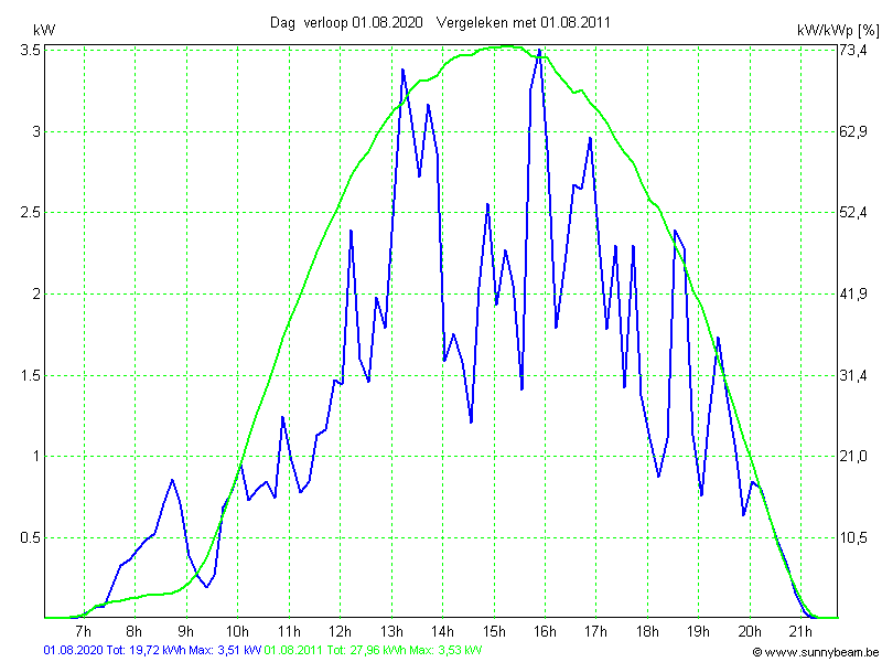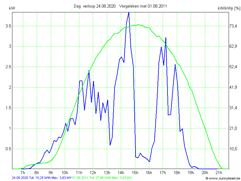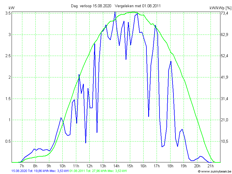 | Datum | Opbrengst [kWh] | Opbrengst [kWh/kWp] | Verwacht [%] |