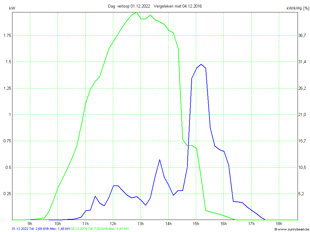 Hier kan je de opbrengst van onze zonnepanelen volgen.