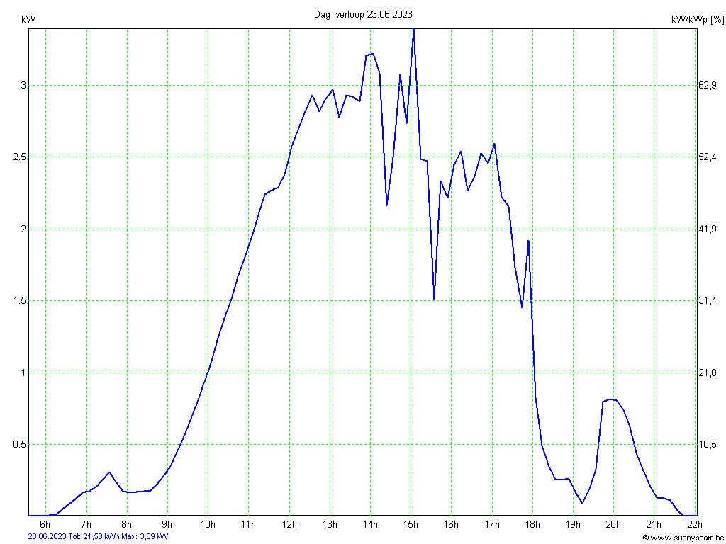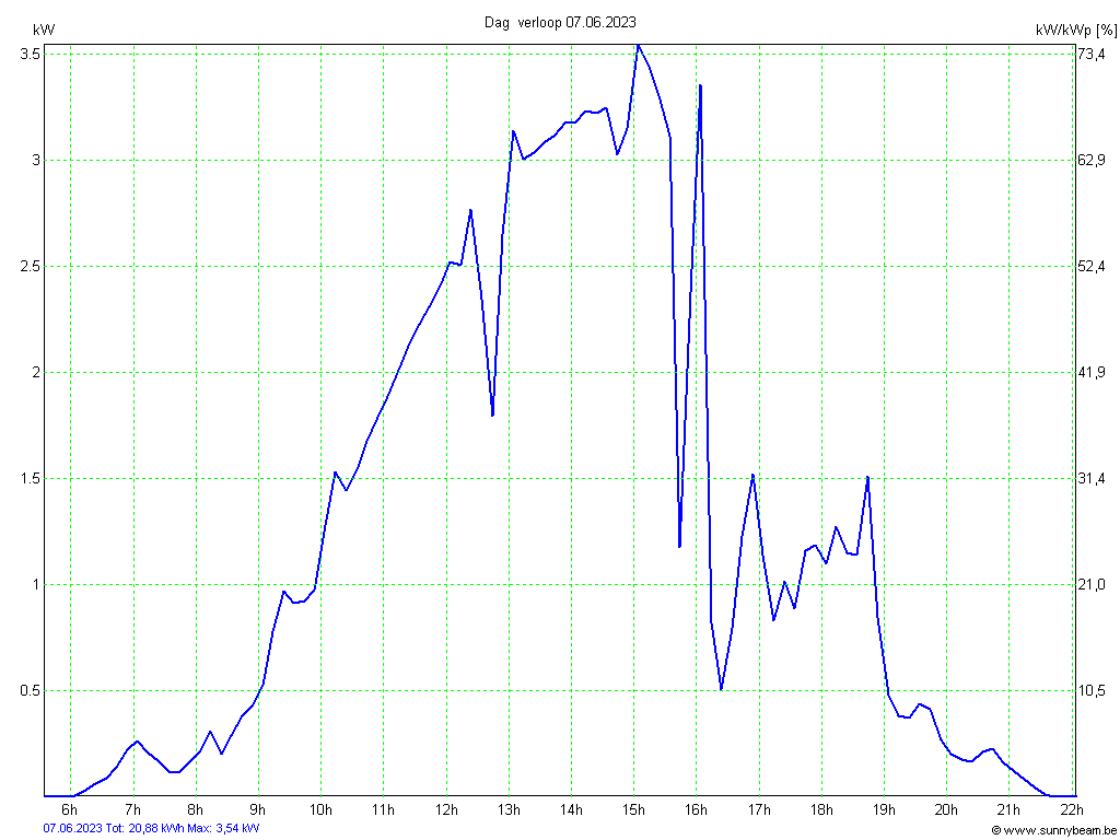 Hier kan je de opbrengst van onze zonnepanelen volgen.