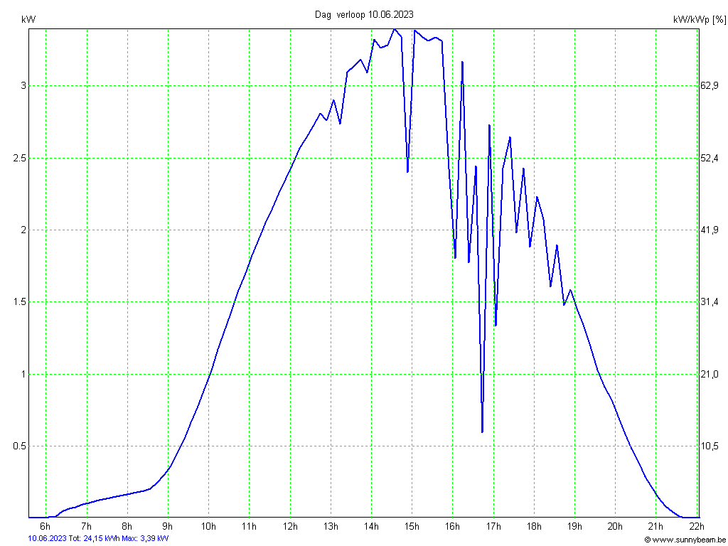 | Datum | Opbrengst [kWh] | Opbrengst [kWh/kWp] | Verwacht [%] |