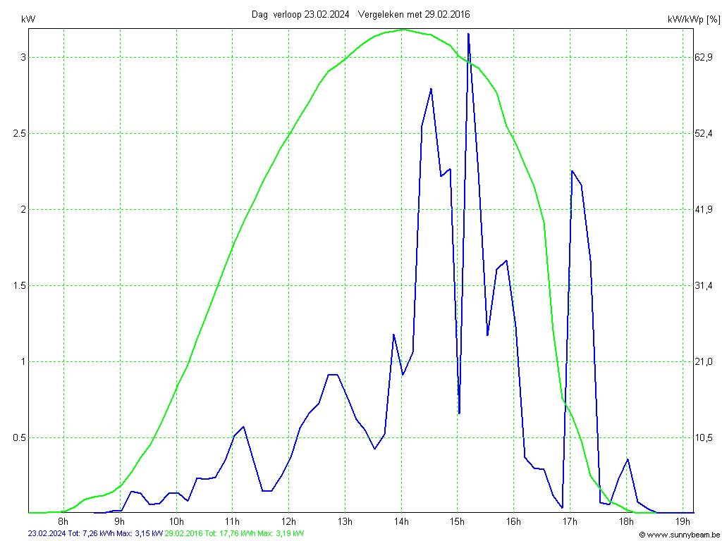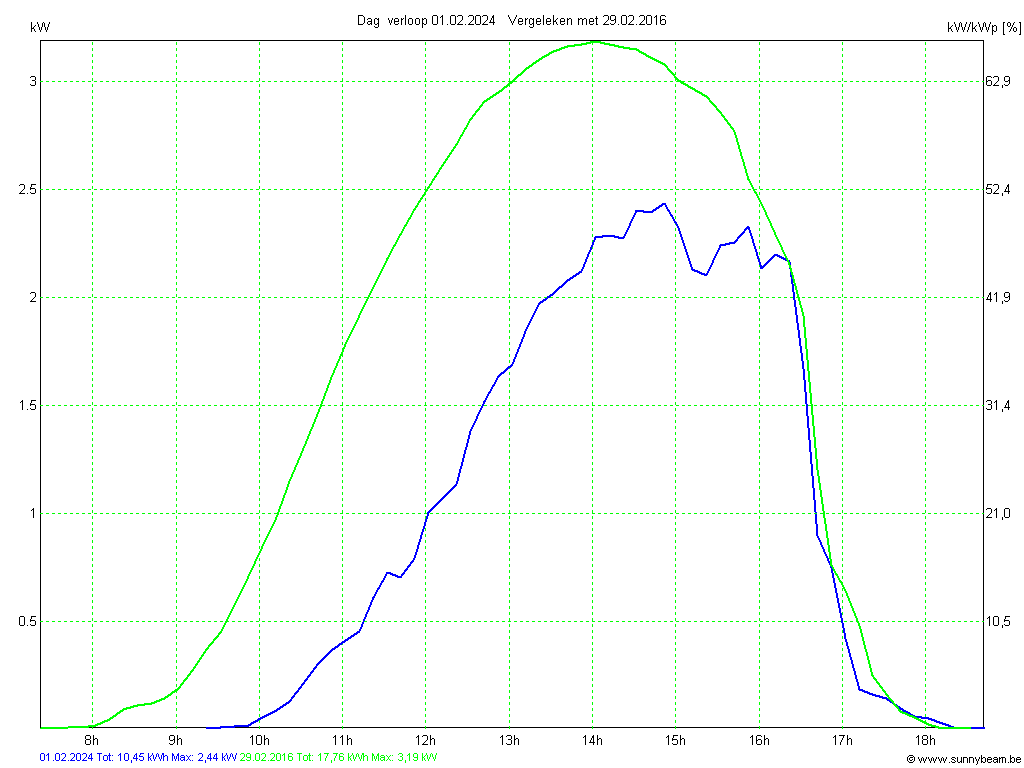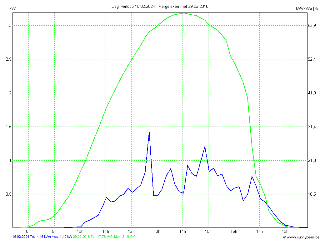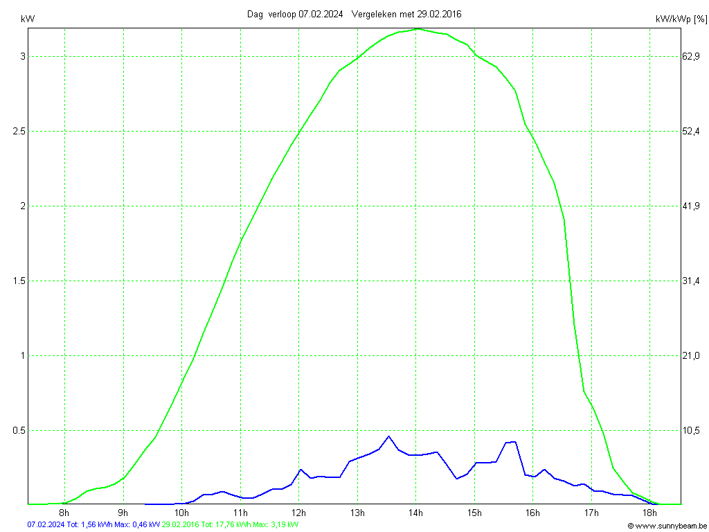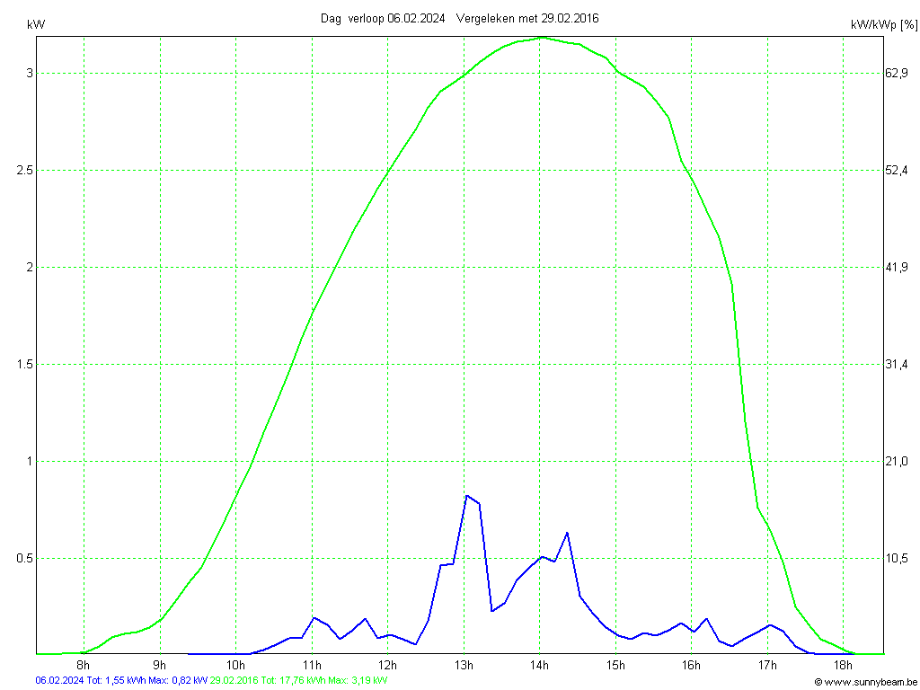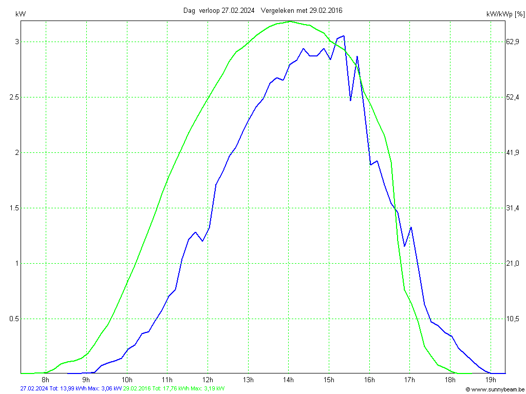 | Datum | Opbrengst [kWh] | Opbrengst [kWh/kWp] | Verwacht [%] |