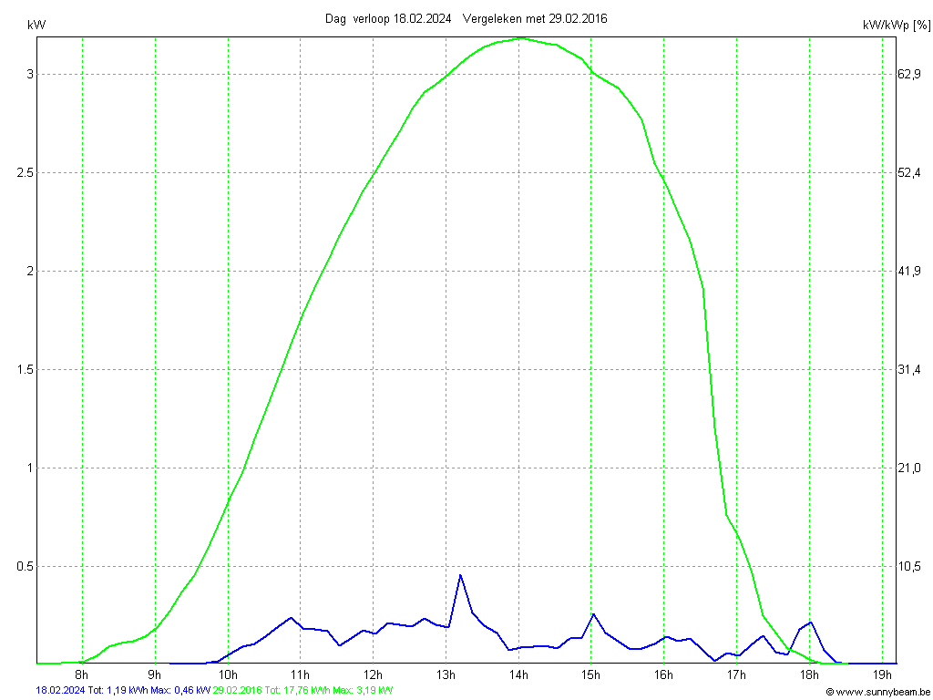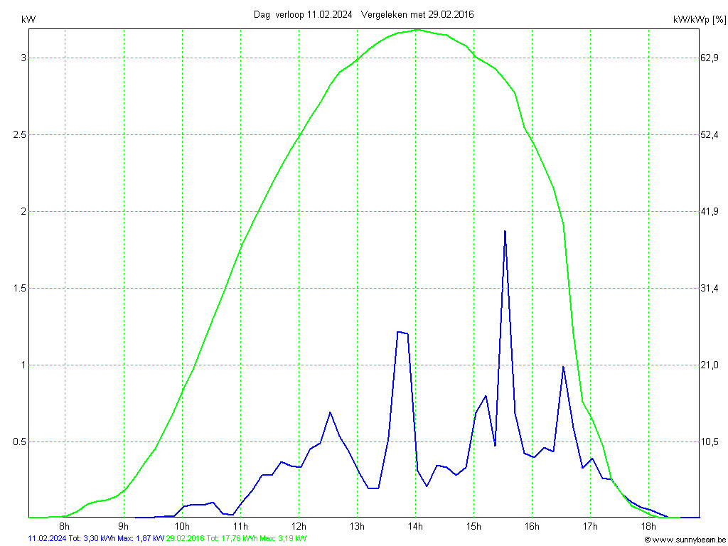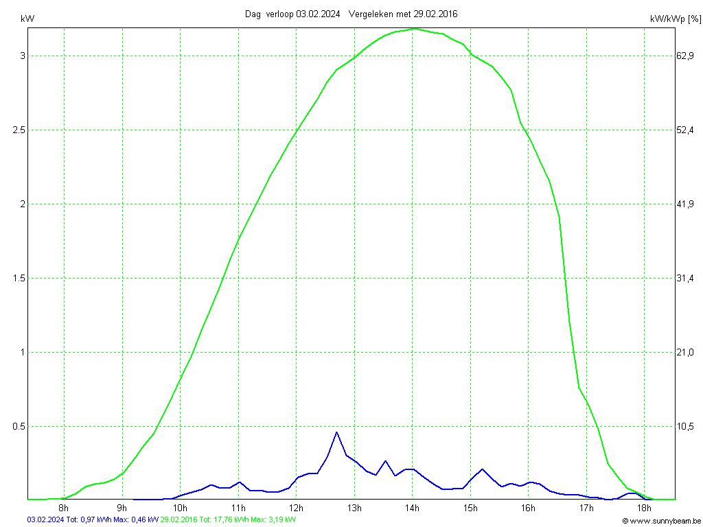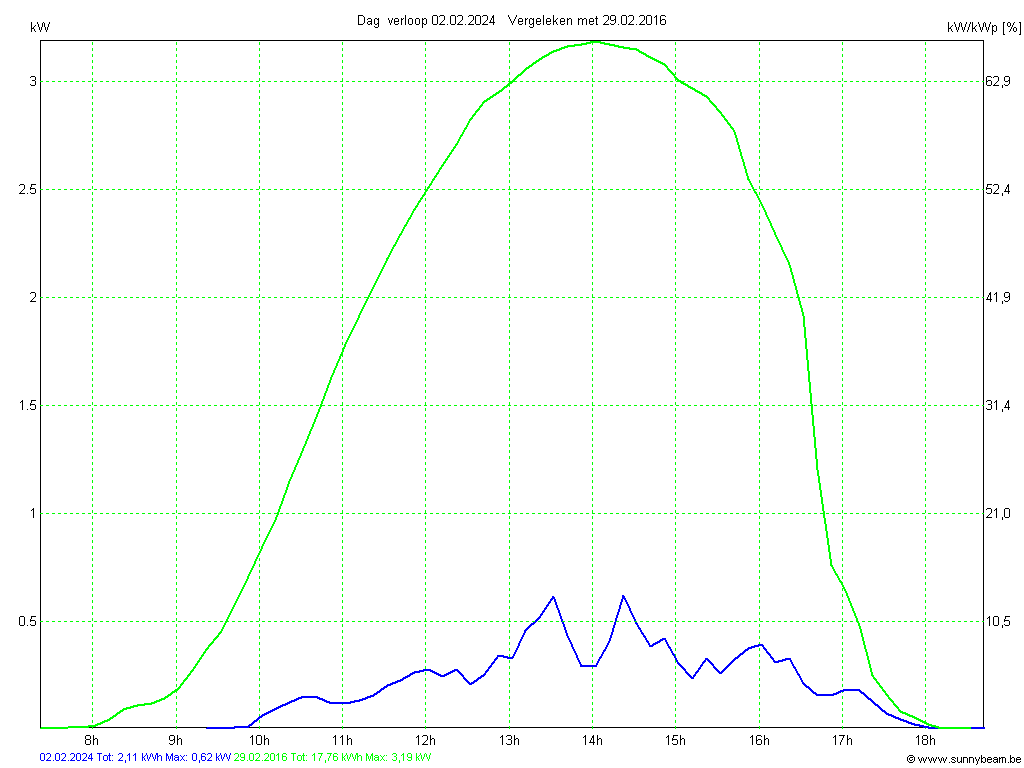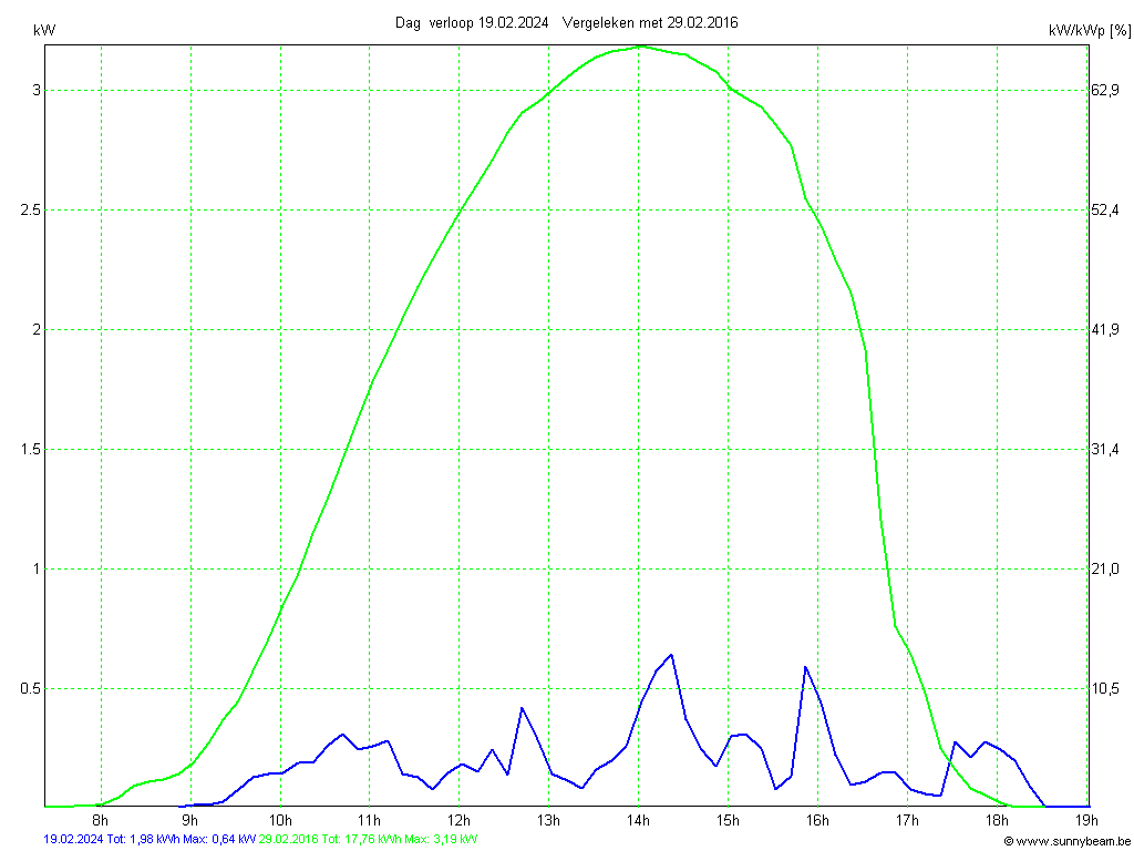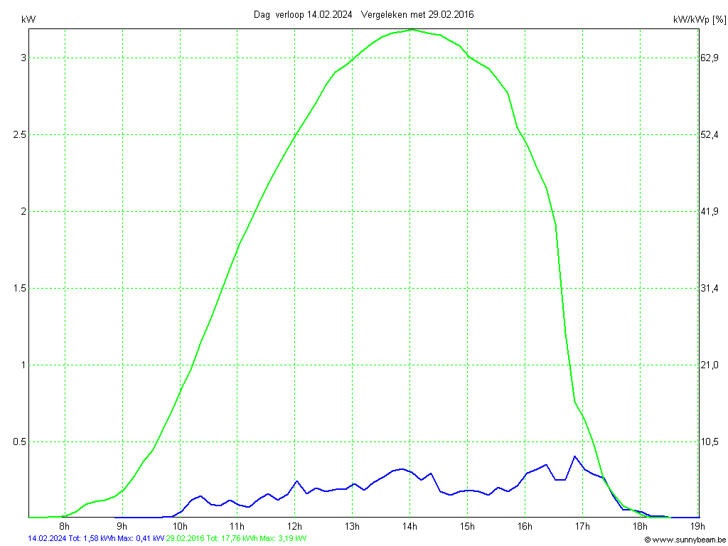 | Datum | Opbrengst [kWh] | Opbrengst [kWh/kWp] | Verwacht [%] |