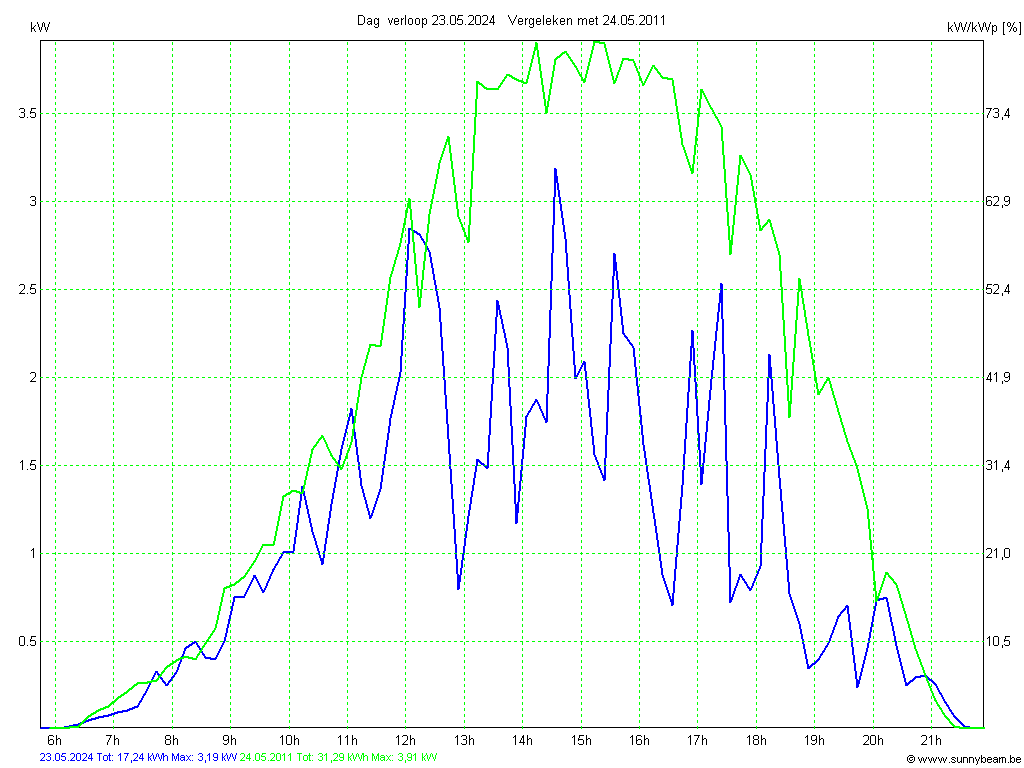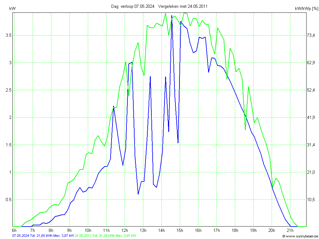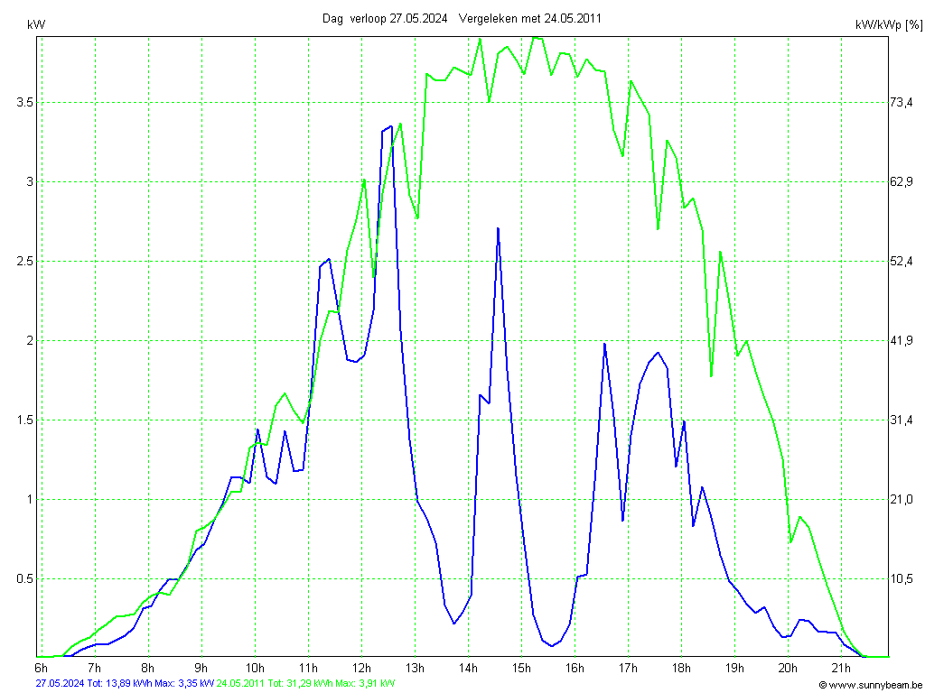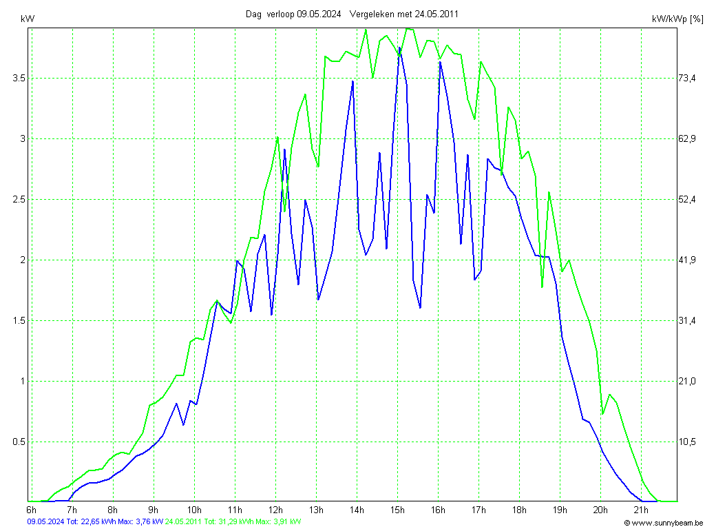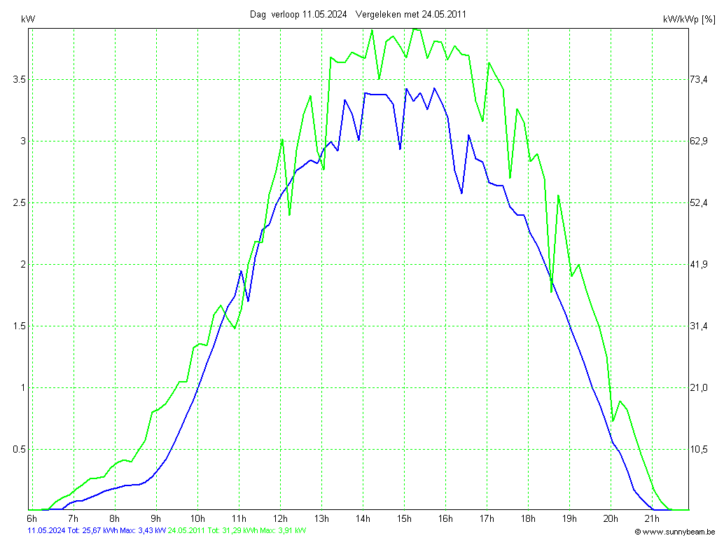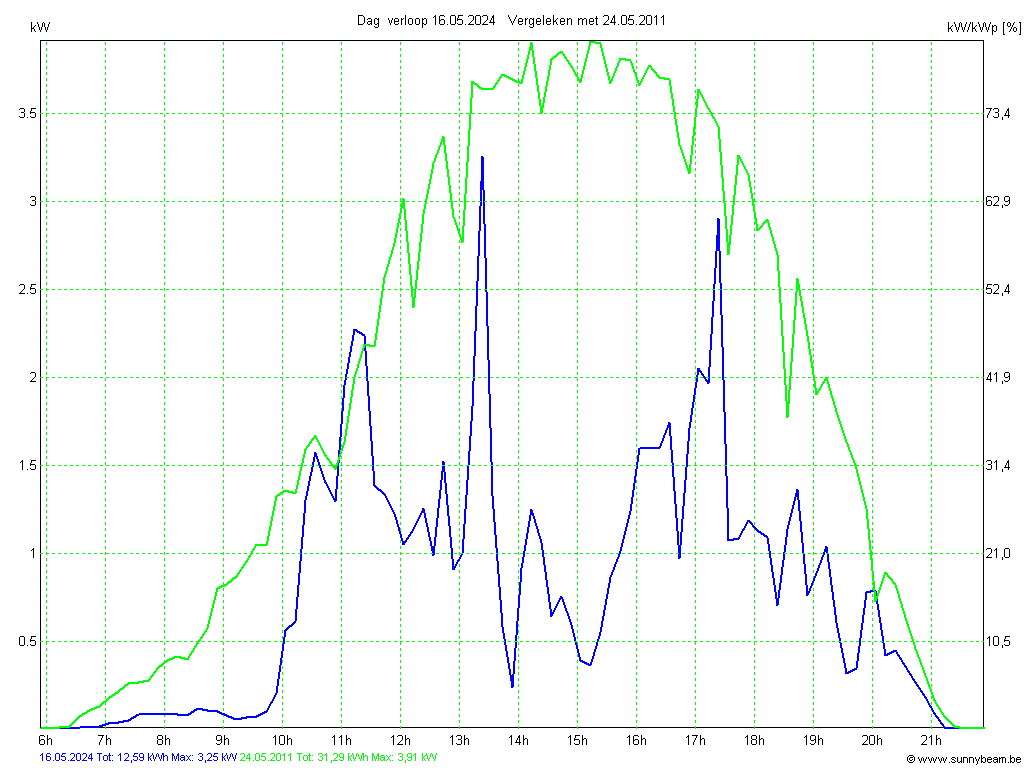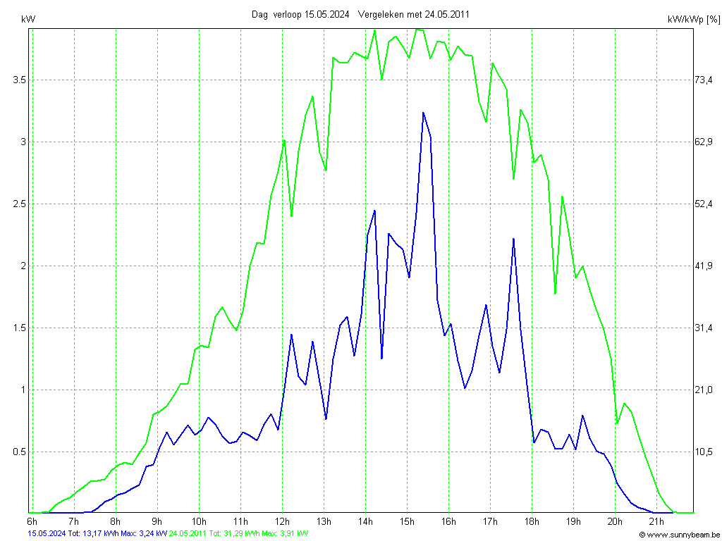 | Datum | Opbrengst [kWh] | Opbrengst [kWh/kWp] | Verwacht [%] |