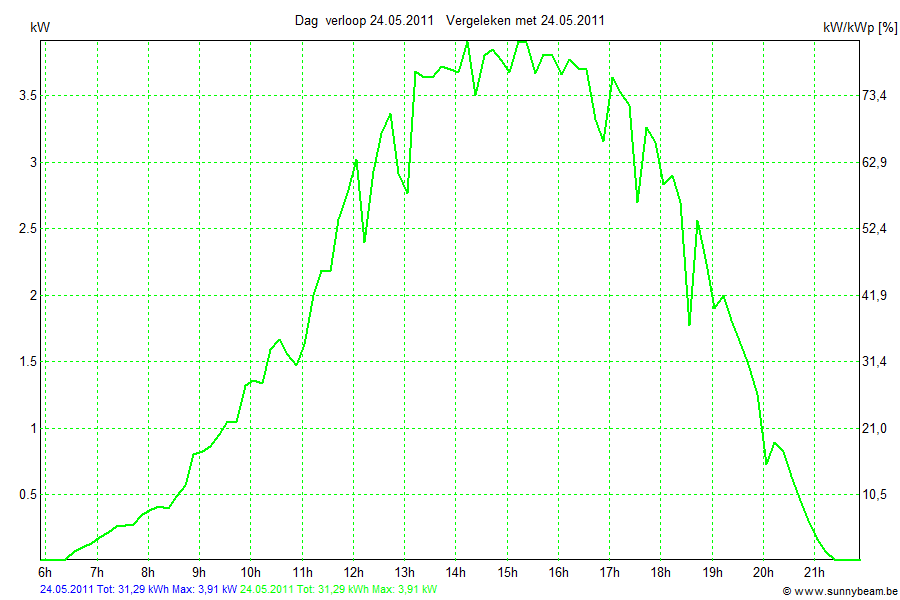 | Kalendermaand | Beste Dag | OpbrengstkWh | specifieke opbrengst[kWh/kWp] | Verwacht [kWh] |